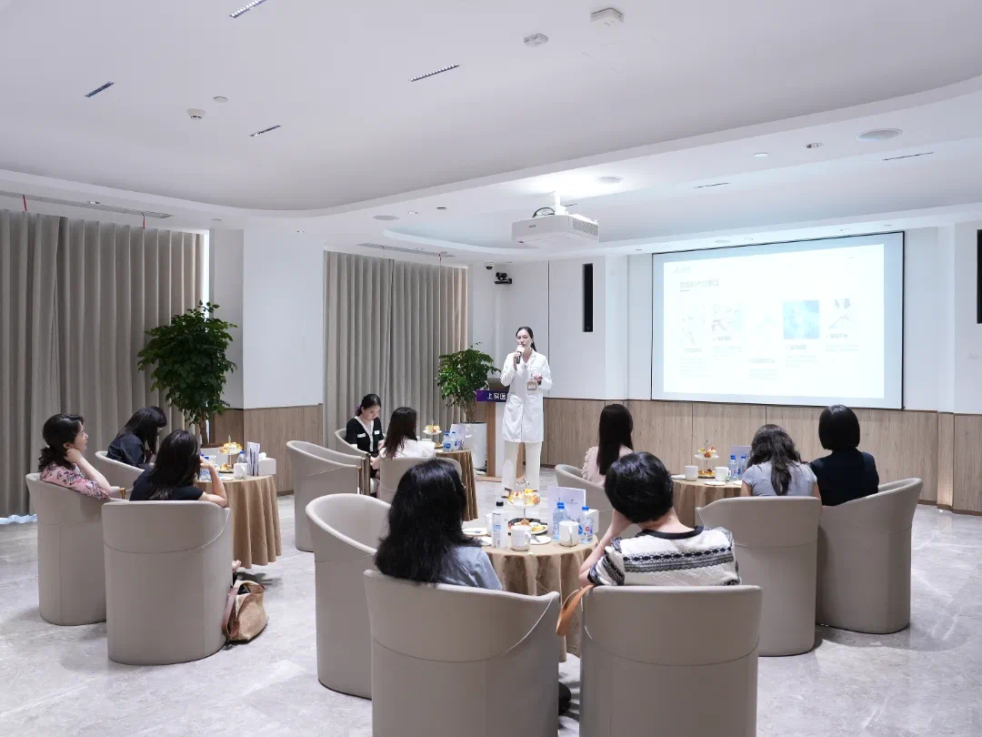 上实医美的资深皮肤科医生为与会嘉宾带来了精彩的秋季护肤知识讲座。医生从秋季肌肤的特点出发,深入解析了秋季常见的皮肤问题,如干燥、敏感等,并分享了科学的护肤方法和专业的美容建议。通过深入浅出的讲解,让与会嘉宾对秋季护肤有了更全面、更深入的了解。