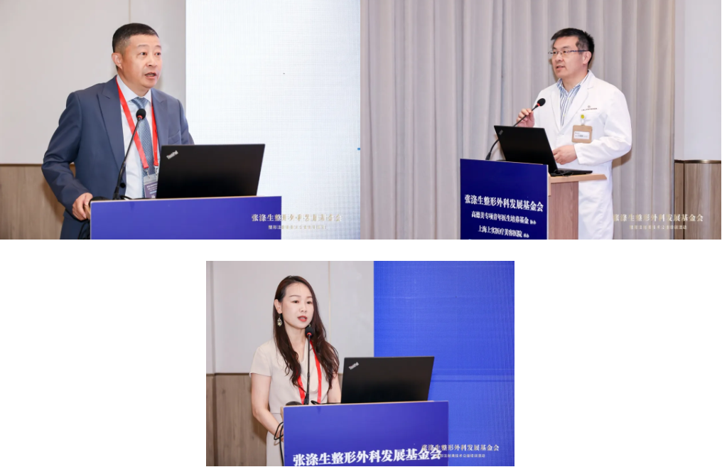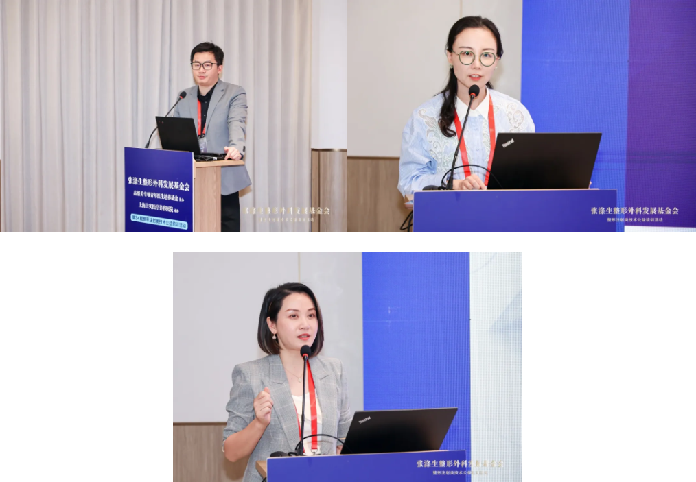 ▲上海九院陈刚博士(上左)、上海九院杨娴娴副主任(上右)、上海时光整形陶琳院长(下)依次进行授课