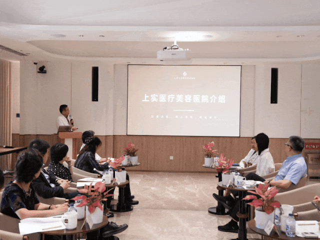交流伊始,就我院的建设背景、发展历程、运营模式及特色优势作了详尽分享。作为公立托管新模式下的探索者,上实医美在坚持“医疗本质”为核心的前提下,积极探索市场化运营与现代化医院管理相结合的路径。其经验在于开创性地构建了以医疗质量与安全为绝对生命线,融合了高效运营管理、人性化服务体验以及前沿技术应用的体系,为国企办医提供了宝贵的实践案例。