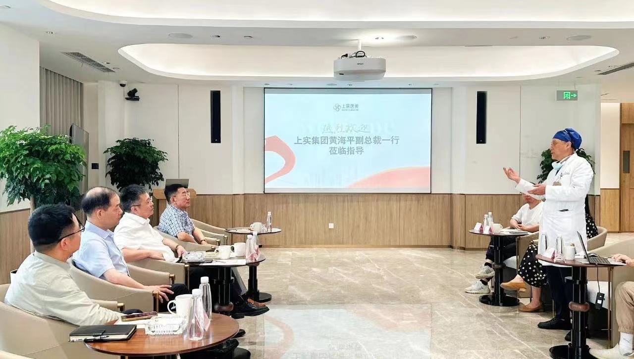 2023年8月8日下午,上实集团副总裁黄海平一行来到上实医美进行调研指导,上实投资董事长郭箭、上海上实集团医疗事业部总经理陈剑伟、上海实业城市开发集团有限公司副总裁何彬、上实医美院长张余光等陪同参加。